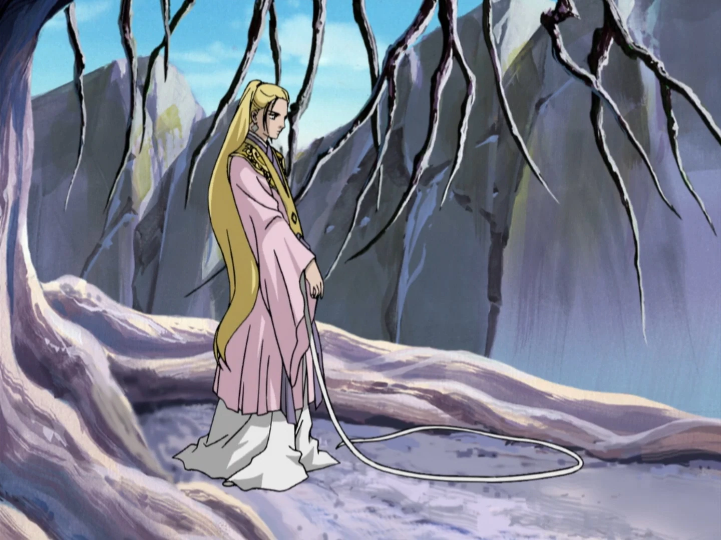 In the Sea of Wind novel, the Gogoukanda is described as a two tailed snake with platinum scales that can shift into a silver bracelet. When in use the the body creates a loop with its head biting one of its tails while the other is wrapped around its owner. In the anime it is seen as a slender rope that can retract into a bracelet.